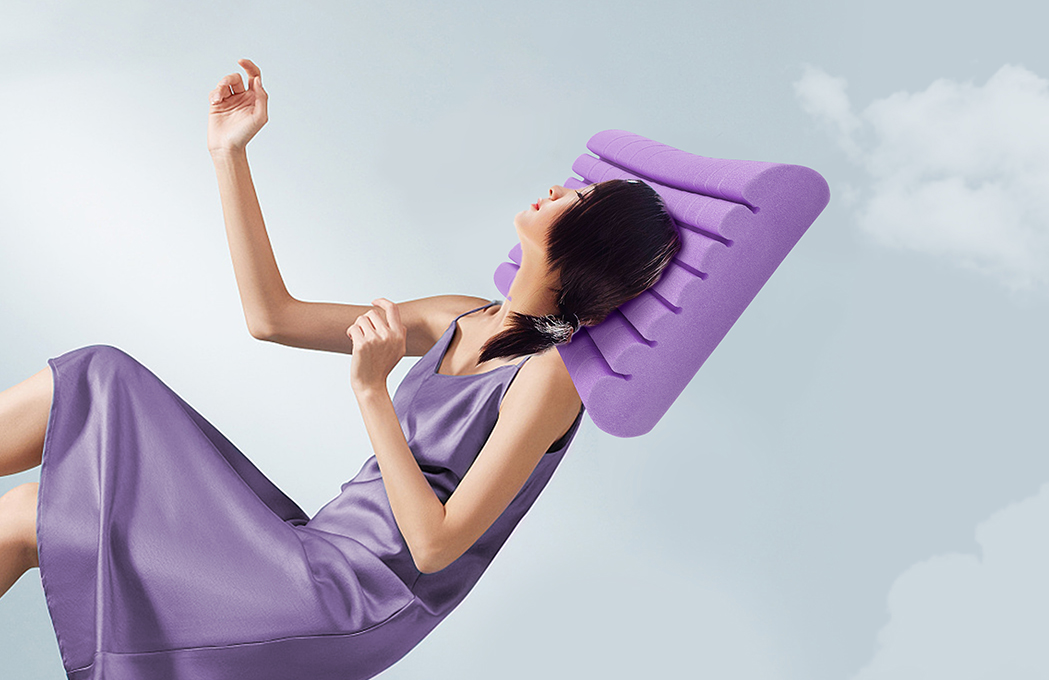 1、独特的悬浮魔方设计,360°全向悬浮释压,分点精准承托头颈;